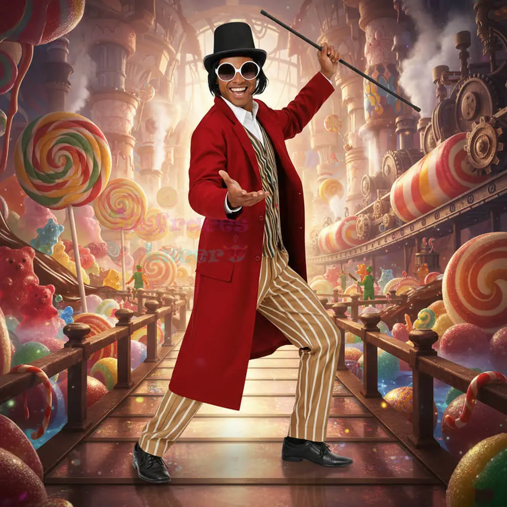 Es el disfraz perfecto para liderar un grupo de «ayudantes naranjas» o para asistir de forma individual como el visionario de los dulces. ¡Prepárate para repartir billetes dorados y mucha diversión!