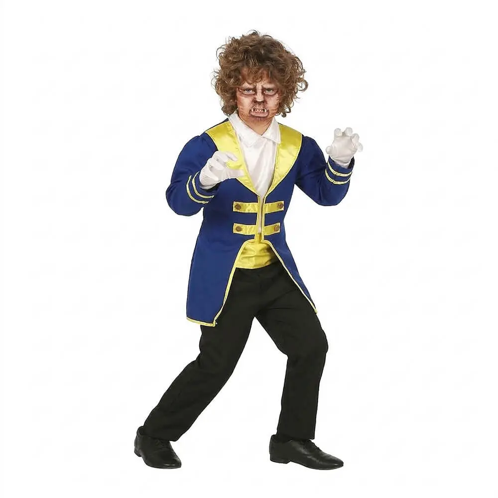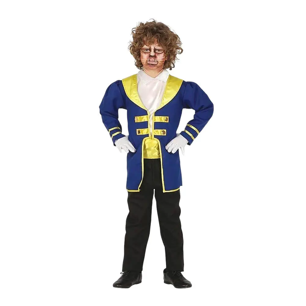 Transforma a los más pequeños en la realeza de los cuentos con este Disfraz de Príncipe Señor Bestia, disponible en Disfraces Lucero. Este traje captura la esencia del príncipe que baila en el castillo, destacando por su imponente chaqueta azul con elegantes solapas y detalles ornamentales en los puños que evocan el estilo de la época.