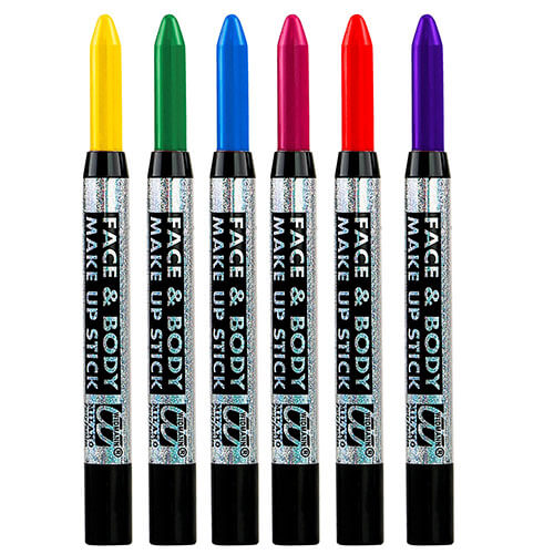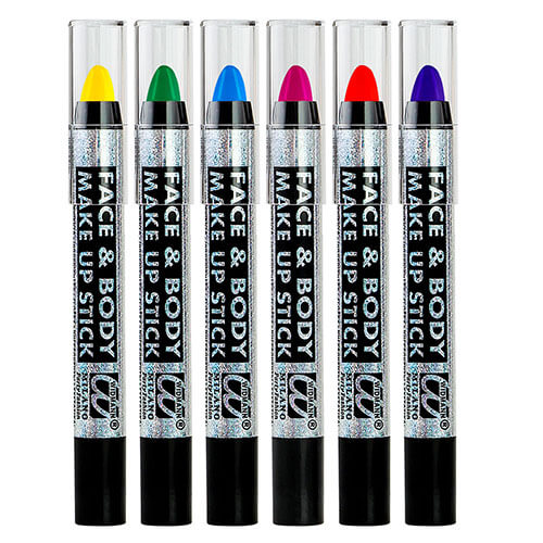 - Colores: Lápices de maquillaje en los siguientes colores: amarillo, naranja, verde, azul, violeta y rosa