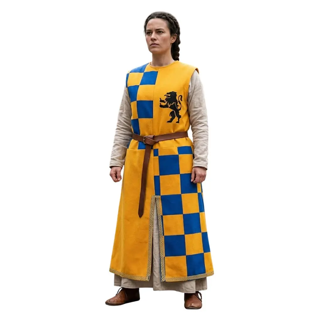 1x Sobrevesta (túnica) medieval amarilla con león.